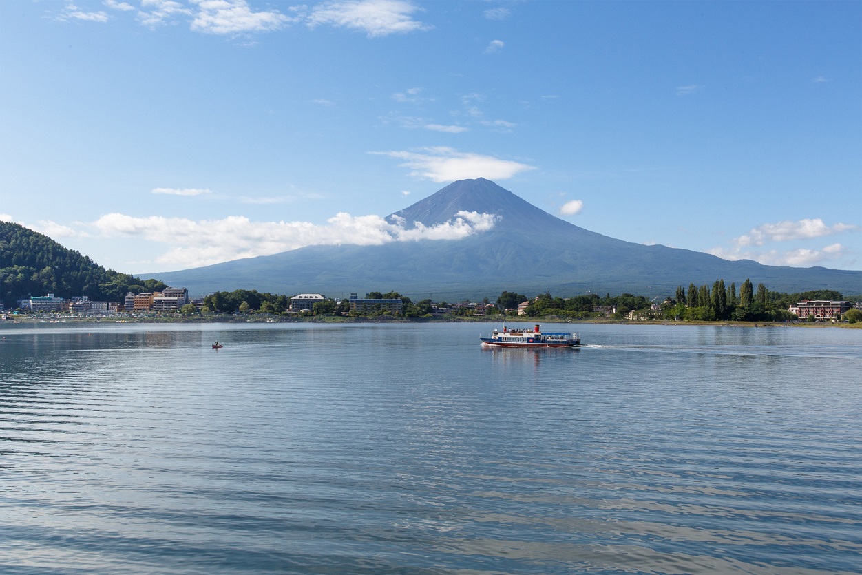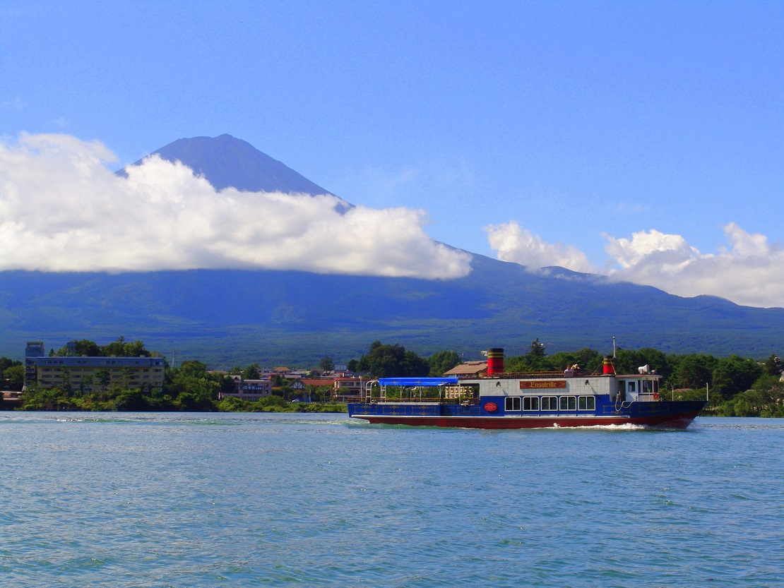 爽やかな風に吹かれ、富士山と湖が織りなす、美しい自然の風景を眺めながら、湖上クルーズを楽しむことが出来る河口湖遊覧船「アンソレイユ号」。