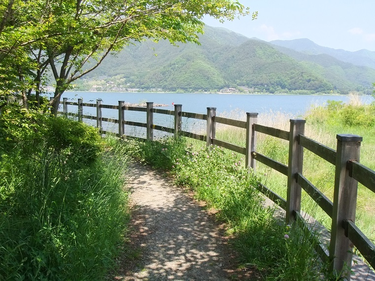 丸栄前から続く湖畔の遊歩道は、豊かな自然の中、鳥たちのさえずりに心癒され、広い空と澄んだ空気に抱かれながら、