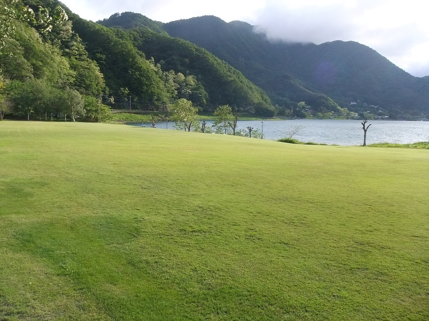 視界が一気に開け、小海公園の芝生広場が見えてきます。