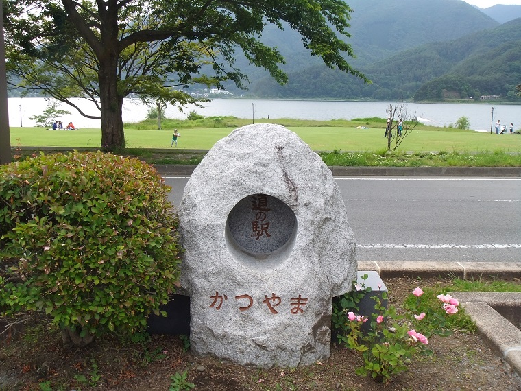 「道の駅かつやま」は、丸栄前から続く湖畔の遊歩道の先(徒歩で約25分)にあります。