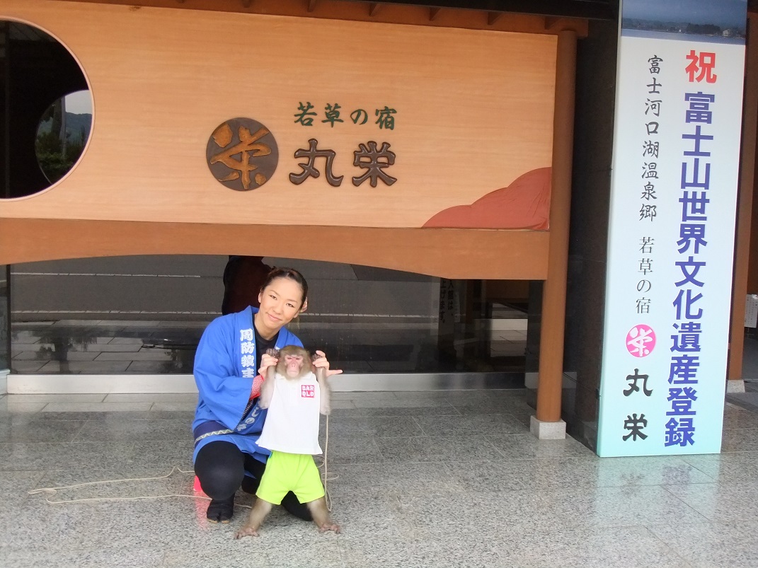 昨日は「河口湖 猿まわし劇場」より、お猿の圭(けい)君&調教師のバナナお姉さんが、丸栄に来てくれました。
