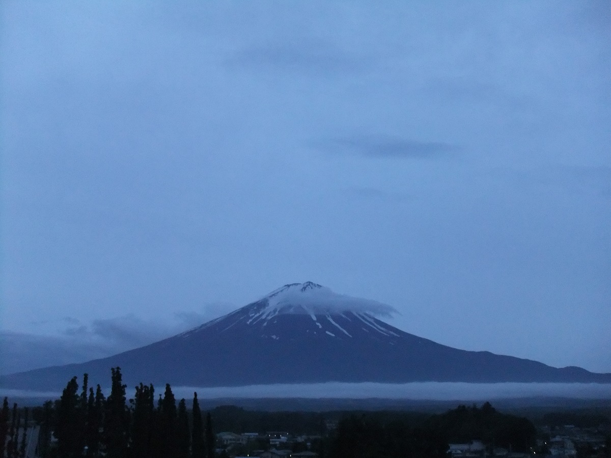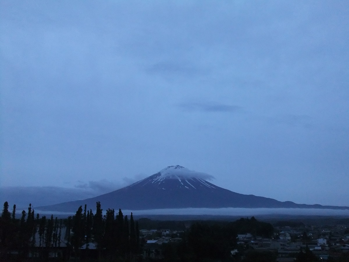 こちらは、当館屋上の富士山展望台から撮影した「世界文化遺産登録一周年の富士山」です。